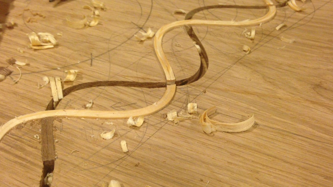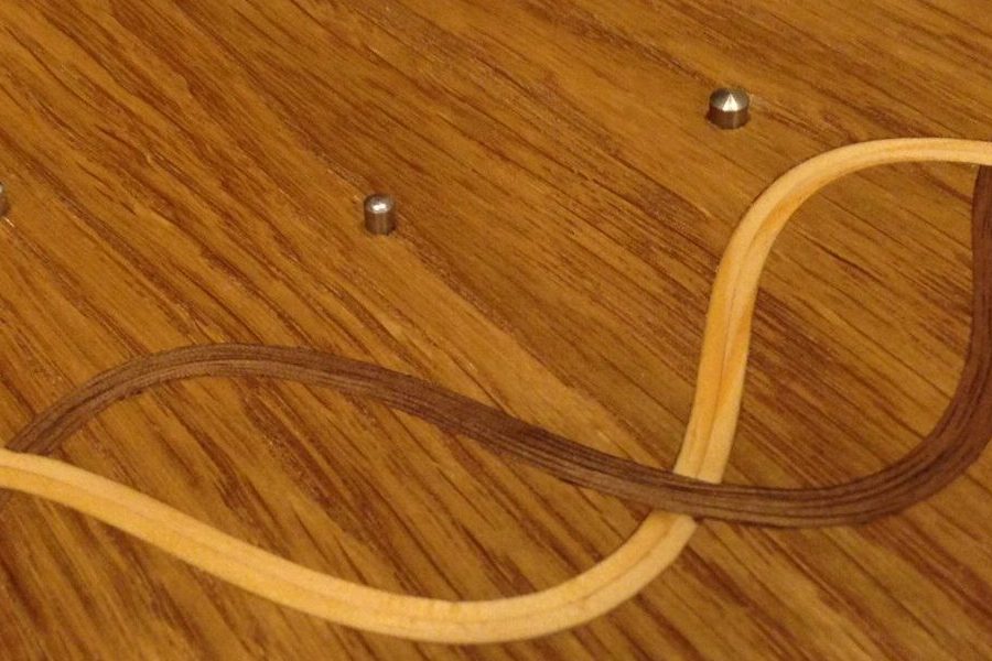 Die Holzstreifen weich gemacht in der Dampfkammer, gebogen auf den richtigen Radius