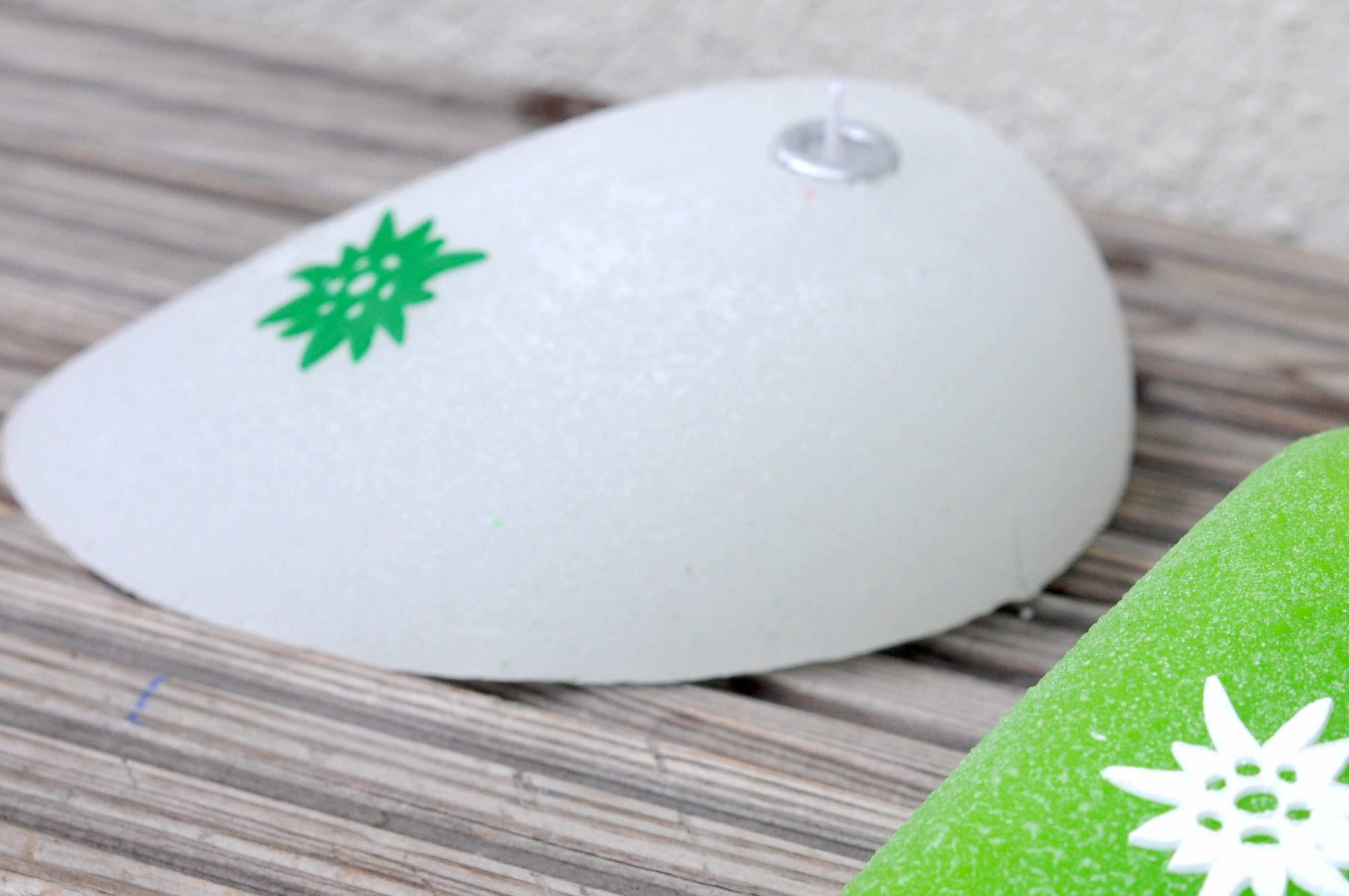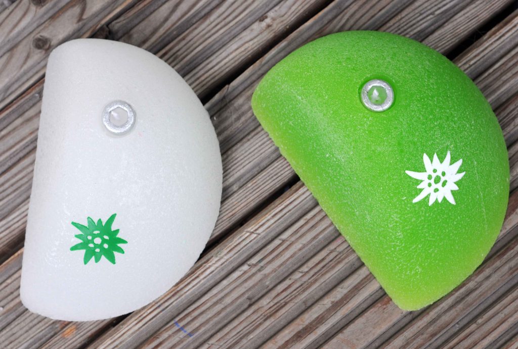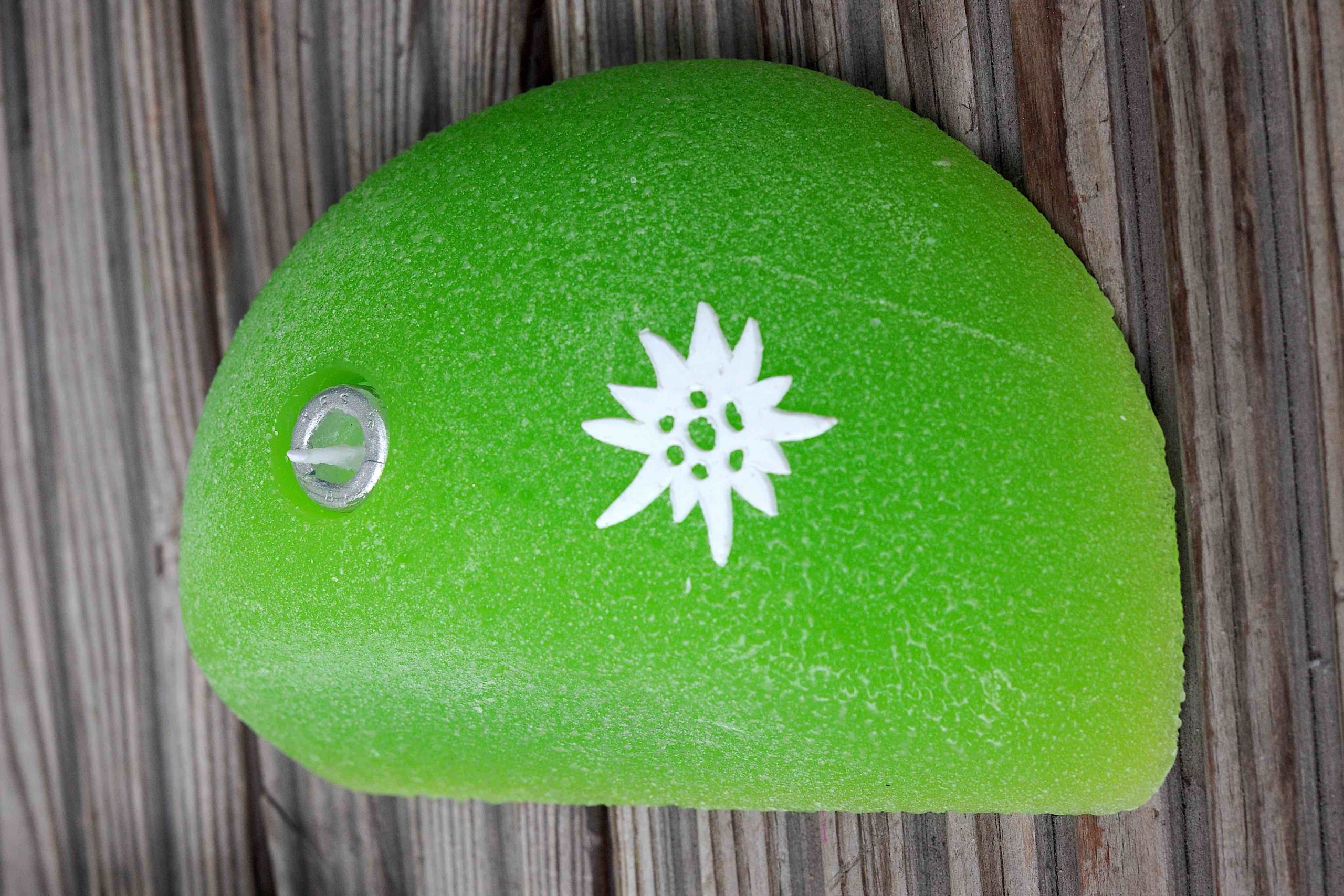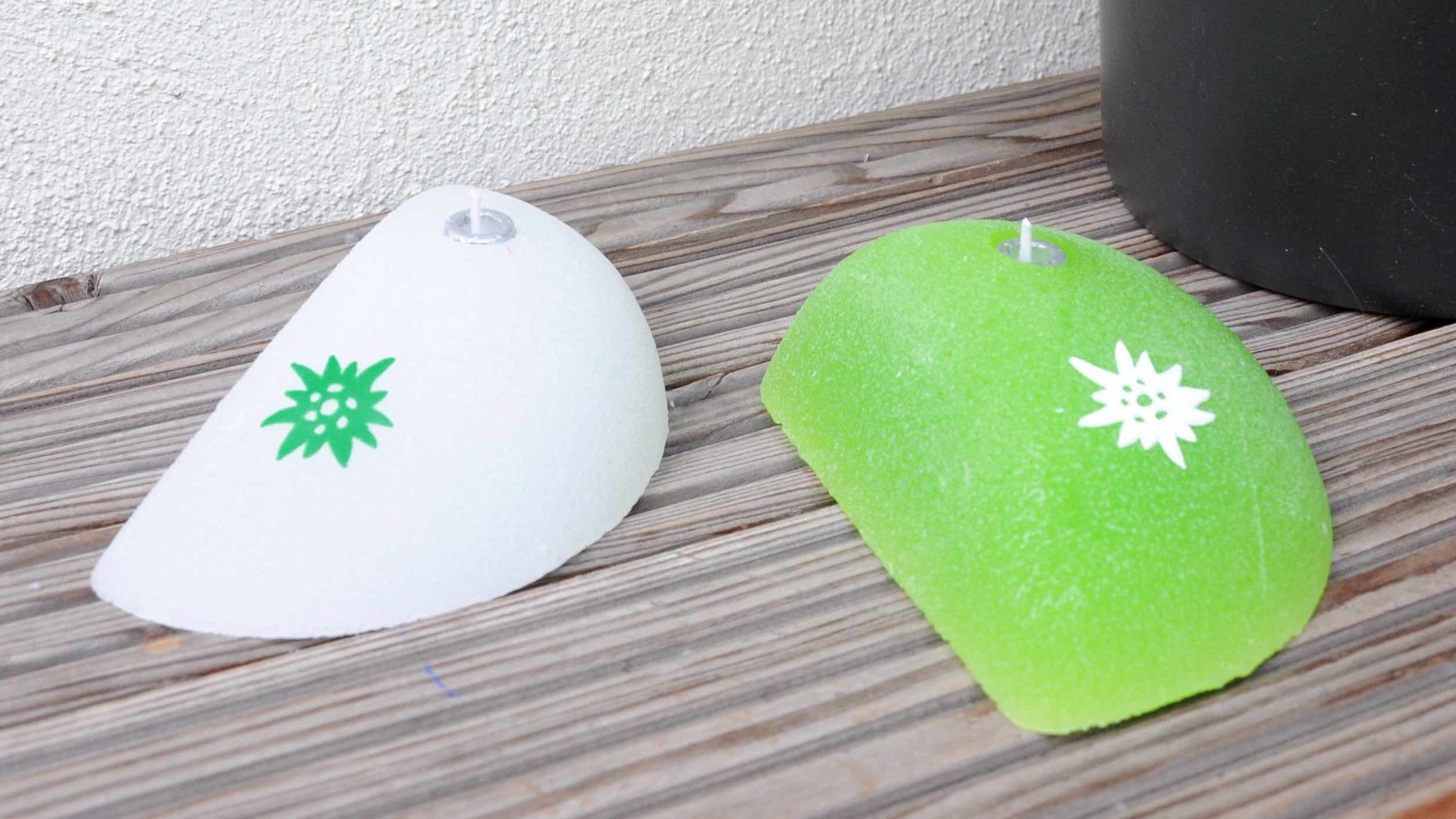 Klettergriffe aus Wachs mit Docht zum Anzünden für die romantischen Kletterstunden, für Geburtstage, fürs Biwakieren und Zelten. Der Docht sitzt in der „Schraube“.